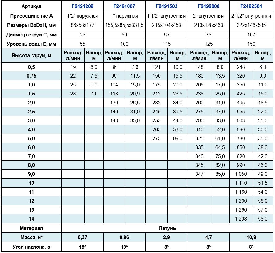 Высота струи max, м